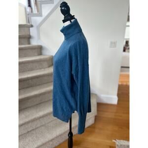 Excellent condition. Teal blue ribbed turtleneck, long sleeve, long line. Slightly oversize fit. Ribbed design down sides.