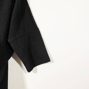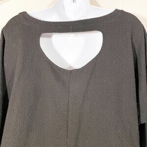 Philosophy Textured Cut Out Back Blouse. Trendy black blouse featuring 3/4 dolman sleeves. Textured material. Cut out open back. Slight boatneck. Tribal print across the inside back of neck. Excellent condition.