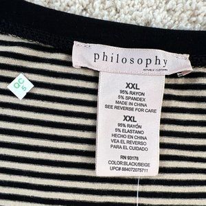 Philosophy Womans Top XXL Tunic Flowy Long Sleeve Striped NWT