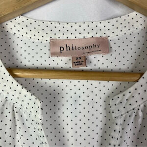 Philosophy White & Black Polka Dot Short Sleeve Blouse XS
