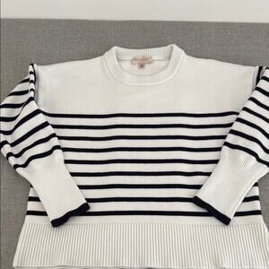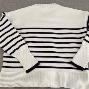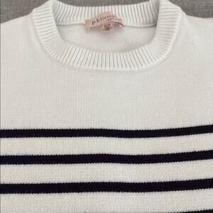 Philosophy White and Black Crew Neck Sweater with Classic Stripes