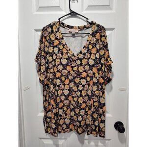 Philosophy Woman 2X Dark Floral V-neck Top Plus Size Fall Colors Comfy Soft