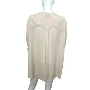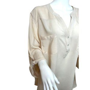 Philosophy Woman Tunic Top Beige 2X Roll Tab Long Sleeve Band Collar Pockets