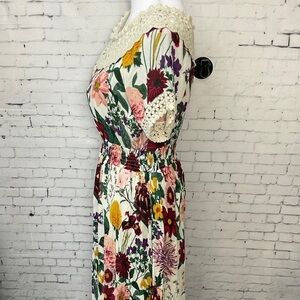 Philosophy Women Floral Maxi Dress Multi Color Lace Boat Neck Stretch Size S