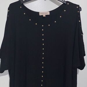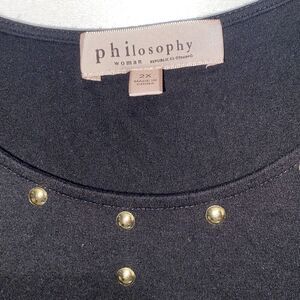 Philosophy Women's Black Studded Crew Neck Cold Shoulder Blouse Size 2X
