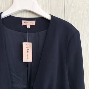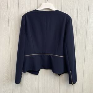 Philosophy Women's Blazer Jacket Navy Blue Open Front Zip Detail Size 14 NWT