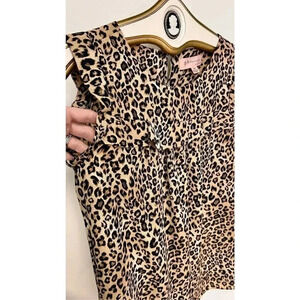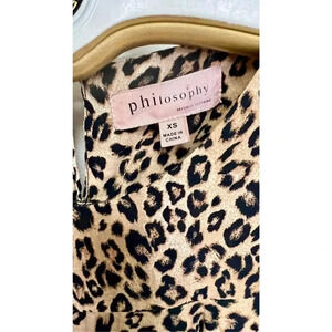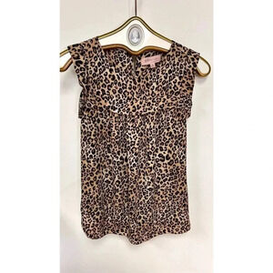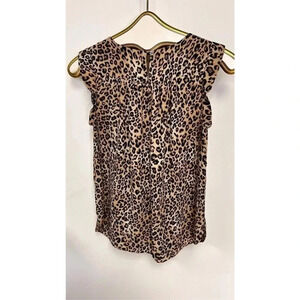 Philosophy Womens Brown Leopard Print Ruffle Pleated Keyhole Blouse Size XS
