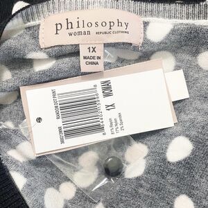 Philosophy Womens Cardigan Sweater Button Up Size 1X Polka Dot Black Cream White