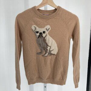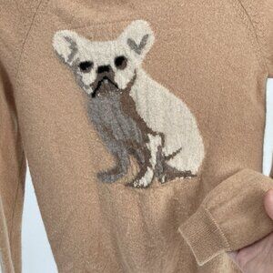Philosophy Womens Cashmere Bulldog Sweater Camel Tan Graphic Cozy Luxe Winter