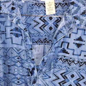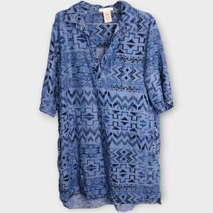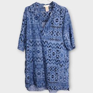 Philosophy Womens Dress Tunic Sz XL Blue Aztec Chambray Western Boho Streetwear