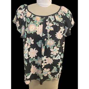 Philosophy Women’s Flutter Sleeve Black Floral Print Top Sz. XL Lightweight