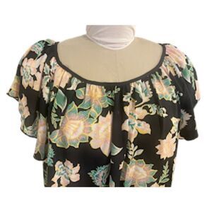 Philosophy Women’s Flutter Sleeve Black Floral Print Top Sz. XL Lightweight