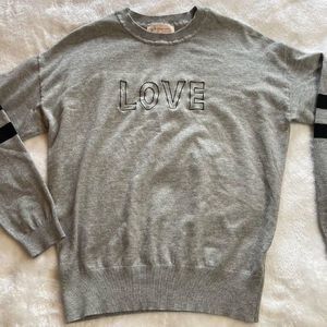 Philosophy Women's Gray and Black Embroidered LOVE Crewneck Sweater Size M