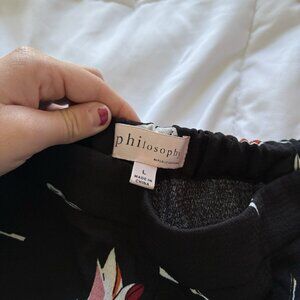 Philosophy Womens Large Black Pink Floral Wide Leg Boho Flowy Palazzo Pants