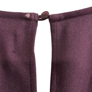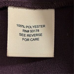 This Philosophy shift dress in size large features a knee-length design and is crafted from polyester. It comes in a vibrant purple color with long sleeves and a scoop neckline, suitable for women. The dress is machine washable for easy care. It is new with tags, though there is a small rubbing next to the button on the back shown in picture . Keywords: Philosophy, shift dress, knee-length, purple , long sleeve, scoop neck, polyester, machine washable, women's dress, size large, new with tags.
