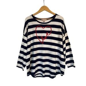 Philosophy Women's Love Heart Striped Pullover Sweater Size 1X Blue White NWT