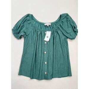 Philosophy Womens Size S Green Swiss Dot Puffed Sleeve Blouse Bohemian