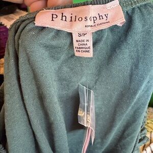 Philosophy Blouse Womens Size S green Swiss Dot Square Neck Puffed Sleeves Bohemian Chic