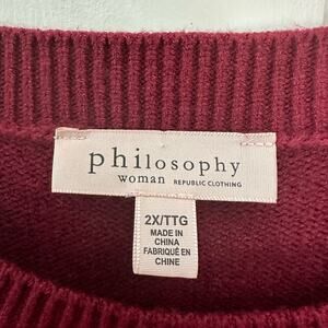 Philosophy Womens Tunic Sweater Plus Size 2X Dark Red Pullover Exposed Seams
