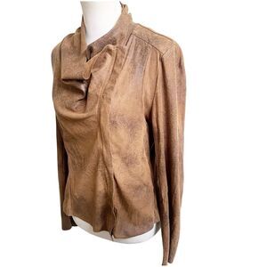 Philosophy Women’s Zipper Front Moto Jacket Size 12 Soft Shell Cognac