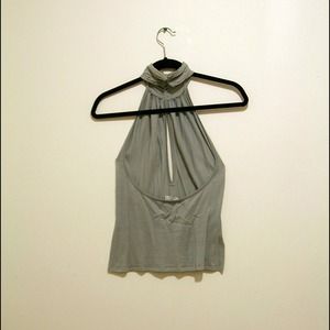 Gorgeous light blue halter top with keyhole neck detail from esteemed Italian designer Alberta Ferretti's lower-priced line. Five little hooks fasten the collar at the back of your neck. Pre-loved, but in excellent condition!