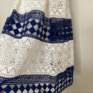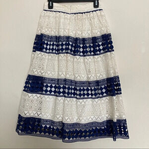 Philosophy di Lorenzo Serafini Lace Midi Skirt Sz 4 Cream/Navy