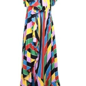 crepe, no appliqués, multicolor pattern, deep neckline, one-shoulder, no pockets, no fastening, unlined strapless flowy, eclectic, multicolor, flowy Artsy eclectic art to wear abstract unique colorful multicolor hipster indie bohemian