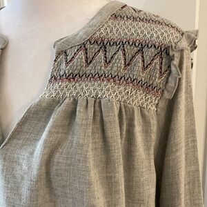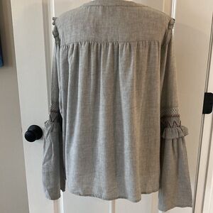 Philosophy small top long bell sleeves gray smocked v-neck boho