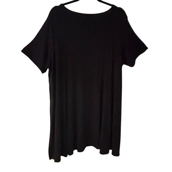 Philosophy 1X black soft boatneck short sleeve hi lo tunic long side vents