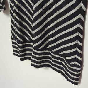 Black and Gray striped v neck tunic Excellent preloved condition Approximate Measurements 20" pit to pit 25 long