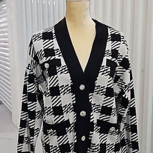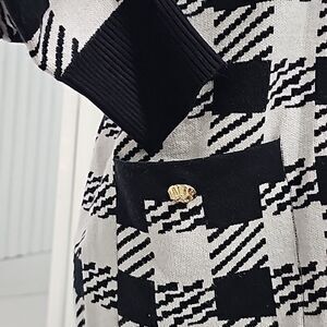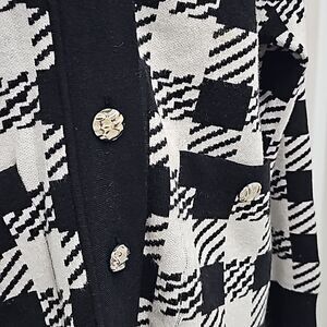 Philosophy Checkered Houndstooth Longline Cardigan Size Small, Gold Button Closure, gold Button Accent, Faux Chest Pockets, Hand Pockets.