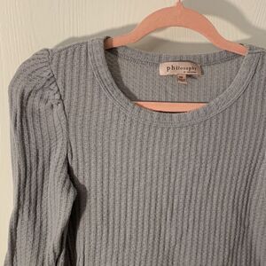 Philosophy EUC gray waffle knit puff shoulder top Size XS