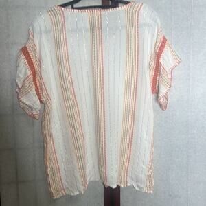Philosophy For The Republic Womens White Metallic Short Sleeve Blouse Sz Medium