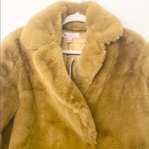 Mustard/gold double breasted jacket with a Lux feel, lined hidden snap closure. Hip, chic & trendy look for the style savvy dresser.