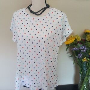 Save $40+ ! Philosophy Polka dot lightweight white wrap shirt with ruffle and peek a boo style back. 💟 Comes in three sizes, new. 85% polyester, 15% rayon.