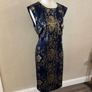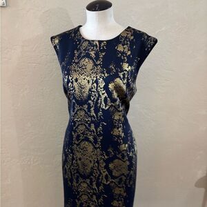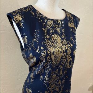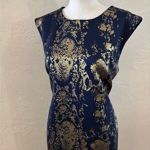 Snake print in navy and gold dress is perfect for any special occasion. The intricate pattern adds a touch of sophistication. A must-have addition to your wardrobe.New condition/ no seen flaws