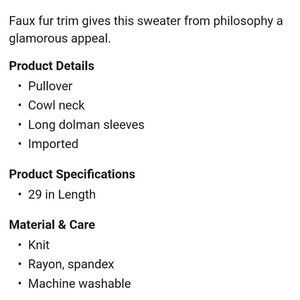 Philosophy faux fur neck and dolman arms