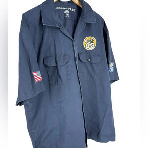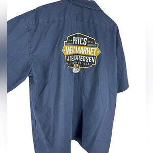 Great soft Dickies blue work shirt with Phil’s meat market logo patch on the back.