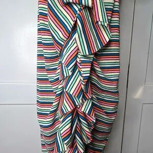 Strapless ruffle front or back ruched maxi dress in bright rainbow stripes