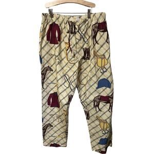 Phineas Cole Brushed Cotton Equestrian Print Pajama Set Tan Size Medium New
