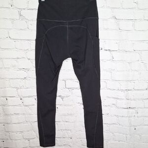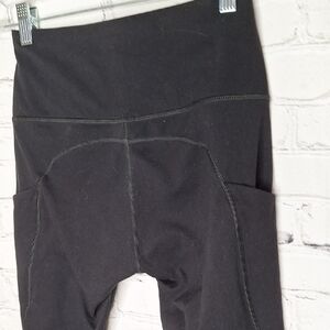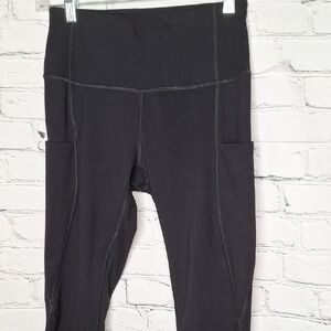 Phisockat Black Ankle Length Legging Wide Waistband Thigh Pockets Sz S