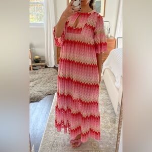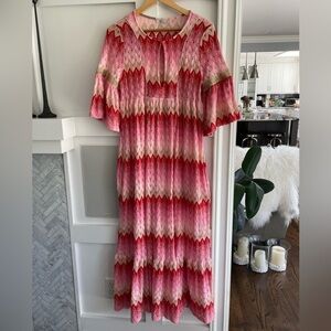 Pho Italy Chevron Pink Red Maxi Dress. Size XS. No slip. It has pockets. Excellent condition. Underarm to underarm 17”. Length 54”.