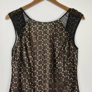 Phoebe Black Chiffon Sheer Laser Cut Metallic Layered Sleeveless Cocktail Dress