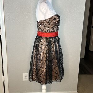 Phoebe Couture Size 6 Mini Dress Lace Corset Bustier Whimsigoth Black Red Belt