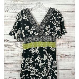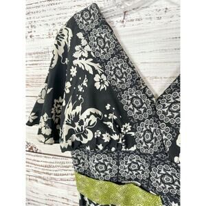 Phoebe Couture Womens Floral Empire Waist Border Trim Silk Dress Black Size 4