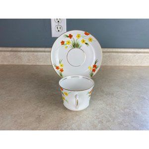 Phoenix Bone China England Painted Flowers Tea Cup And Saucer Set
