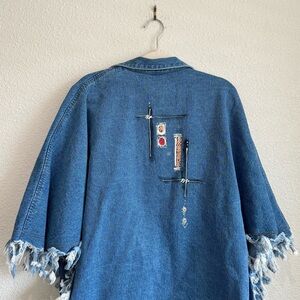 Phoenix Conexion Art To Wear Custom Signed Fringe Denim Poncho Boho Jacket