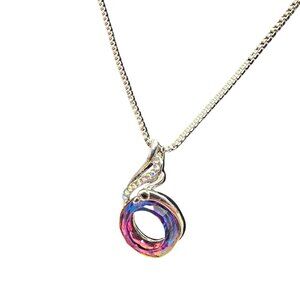 Phoenix necklace, crystal pendant, adjustable chain, multicolor jewelry, silver tone, women's necklace, rebirth symbol, eternity necklace, hope jewelry, elegant pendant, box chain, lobster clasp, statement jewelry