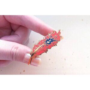 This Phoenix Feather Enamel Pin features a gorgeous, deep blue sapphire glitter color and makes a beautiful and unique gift inspired by mythology surrounding the iconic fire bird. The phoenix represents the Sun, perseverance and renewal. This hard enamel pin is 2" from tip to tip and features a lovely contrast of red and beautiful blue sapphire glitter. It is set on a highly polished gold-plated metal. This is a Grade A Pin, the highest grade awarded to pins, meaning that it doesn't have any noticeable flaws.
