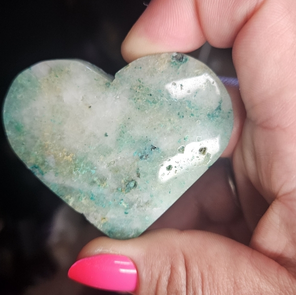 Elegant heart-shaped pendant featuring a blend of green and white hues. Perfect for adding a touch of nature-inspired beauty to any outfit.